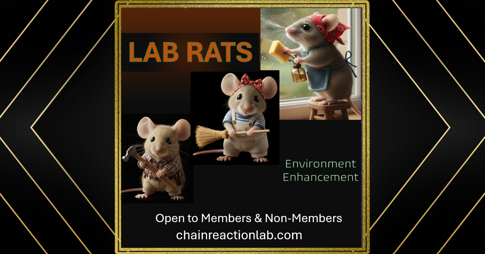 All skill levels are welcome to contribute! Beyond the benefit to the club, you will leave with a powerful sense of accomplishment knowing you directly improved our shared domain. By participating, you are investing your time and energy to help ensure our club remains comfortable, functional, and worthy of our community. Join your fellow Lab Rats and work towards successful mission completion!